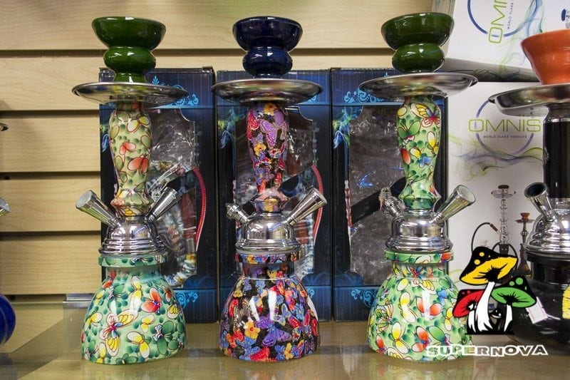 Hookah became extremely popular in Persia during the 19th century, where a unique blend of dark tobacco called Tombeik, was burned over hot coal which bring out the strong flavor of the smoke. Women took to the Hookah pipe as a favorite activity, and it quickly rose to be seen as a status symbol. Fashion icons began smoking Hookah, which led to the addition of design elements to make the appearance more aesthetically pleasing. Many designs use mosaic prints and paintings to enhance the artistic design of the pipe.